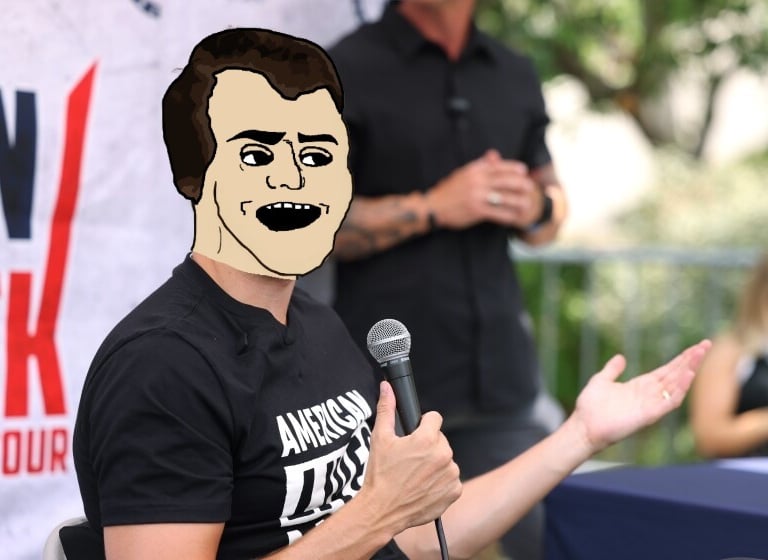 Kirk wandered university campuses like a lone NPC stuck on a side quest, microphone in hand, eyes scanning for opponents who never quite spawned. He asked questions anyway. He answered them himself.